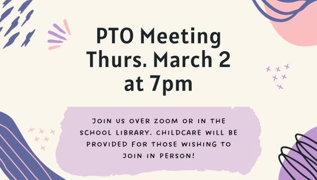 Please join us for our next PTO Meeting at 7pm on Thursday, March 2. We will be seeking several new PTO volunteers for the 2023-2024 school year, so please come and ask all your questions about what each of the open roles might involve! All new & returning students’ parents or guardians are welcome and encouraged to join, as ALL Irving families are a part of the Irving PTO! Join us in person in the school library (childcare will be provided) or virtually via zoom.
