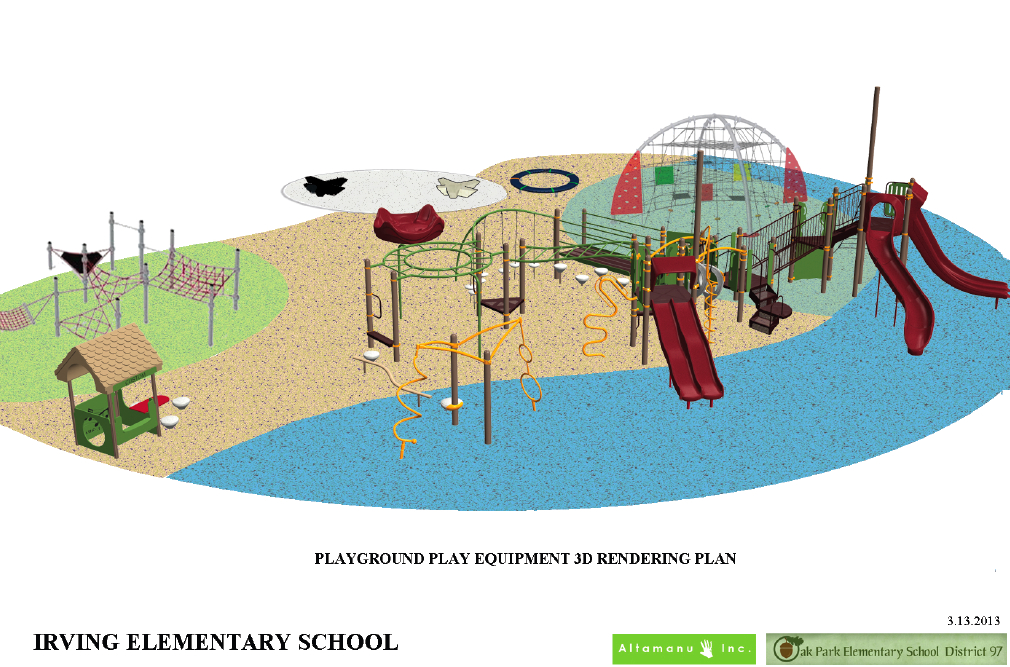 On Tuesday night the District 97 Board of Education voted unanimously for construction to take place this summer to completely redo the Irving schoolyard. Thanks to a strong partnership between District 97, the Park District and the Irving PTO, this project is now a reality!